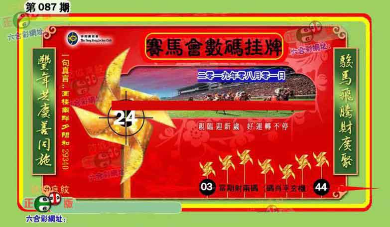 087期开奖时间2019年08月01日(星期四)晚9:30开(农历七月初一 马冲鼠)