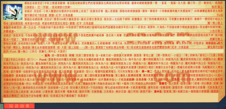 【5】.老總好,深夜來信,不為肖和碼,只為想跟您説聲教師節快樂,您雖不是我們現實中的老師,但在這六海裡,您就是那燈塔,默默的毫無怨言的指引著我們,好聽的可修飾的話語我也説不來,就只能匯成一句話了,“謝謝您老師,您辛苦了,祝您節日快樂”! 西蘭花敬上