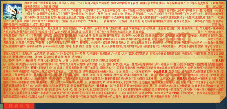 【5】.老總好呀,你那麼久不回我了,難過,今天今天我收到紅字天書了,我很開心,哈哈哈,當我看見你賜我的大名,然後出現在這本史冊的時候,你不知道我有多高興哈哈哈哈......我會一直用豐衣足食這個大名的,我希望我的名字可以存在史冊裡, 呵呵, 挺驕傲的,謝謝,老總了,紅字天書裡面的記錄真的非常仔細, 感謝你的付出,再次感謝...願老總永遠年輕快樂,紅字悲冷棲苦 豐衣足食致上