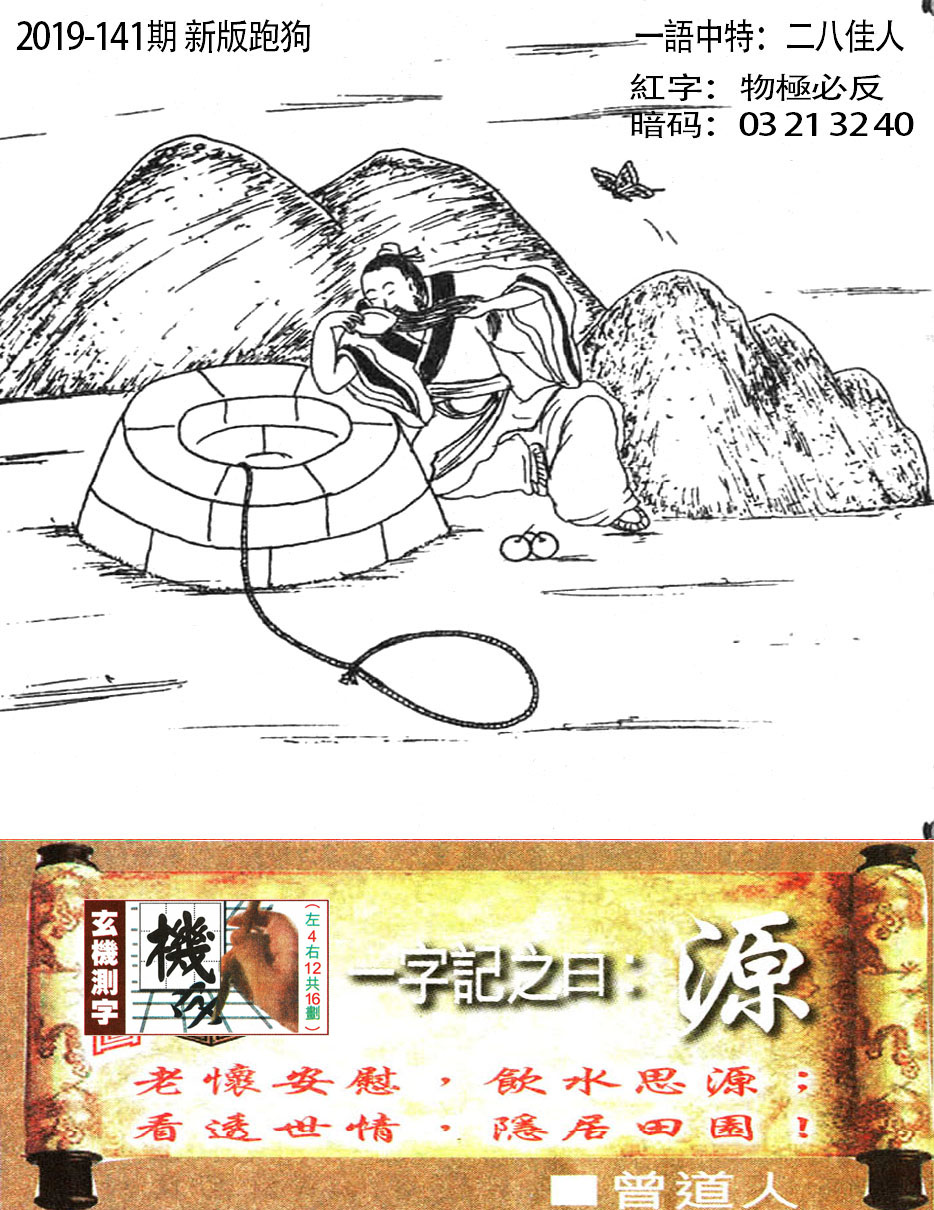 141期:新版跑狗一字記之曰【源】玄機測字:《機》